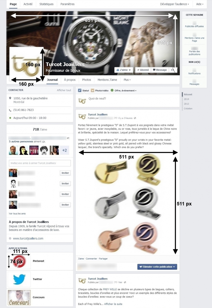 Depuis le début du mois, Facebook introduit graduellement un nouveau layout pour les pages Facebook, qui n'arrivera officiellement pour toutes les pages que dans les semaines à venir. Puisque la page d'un de nos clients est l'une des heureuses élues à avoir déjà changé, nous avons pensé vous faire un petit guide des nouvelles dimensions des images sur les pages Facebook, bien que le seul réel changement soit au niveau des images dans les publications, qui sont redevenues carrées, et les images des liens.